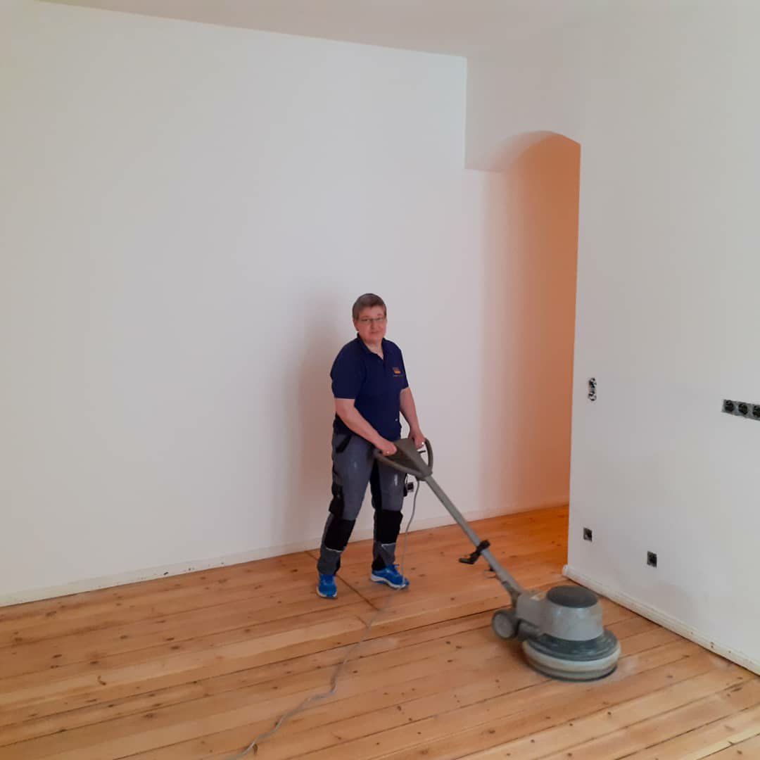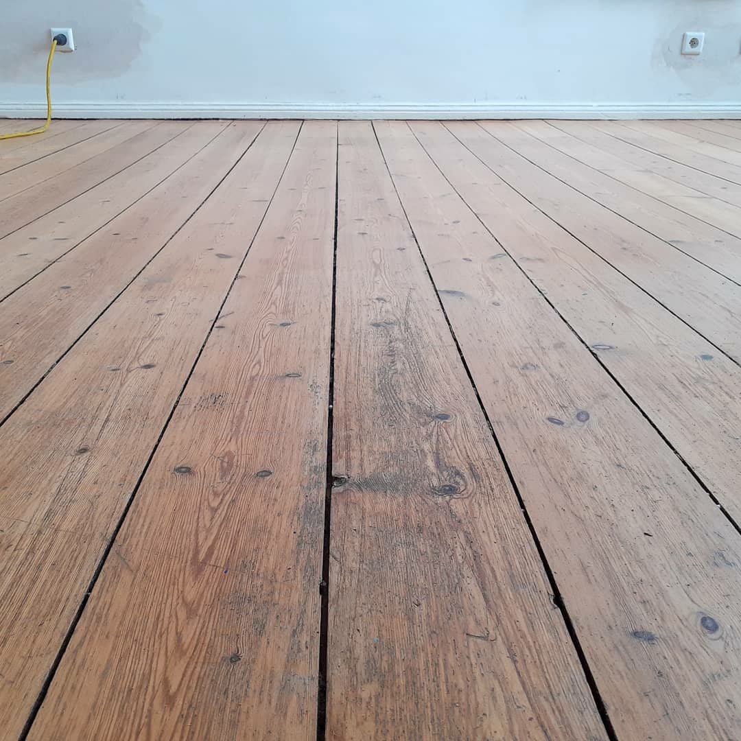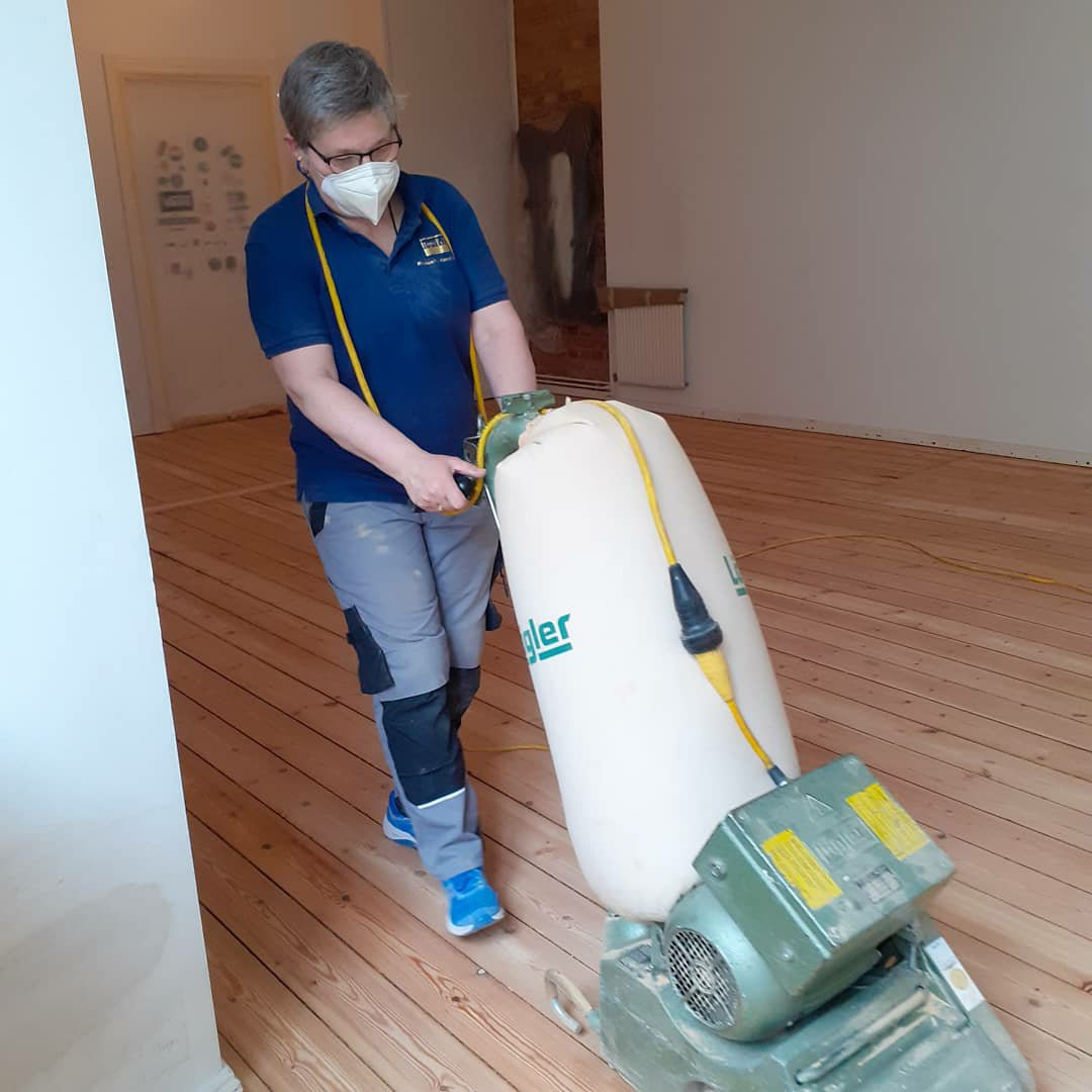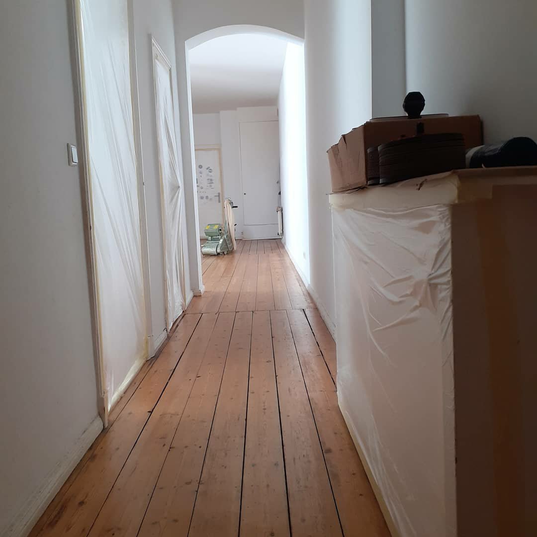 Der Boden die Bodendielen wurden abgeschliffen und begradigt, mit einem Wasserlack versiegelt & die Wände sind gestrichen