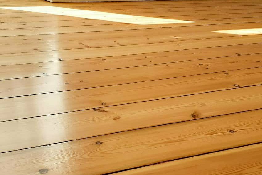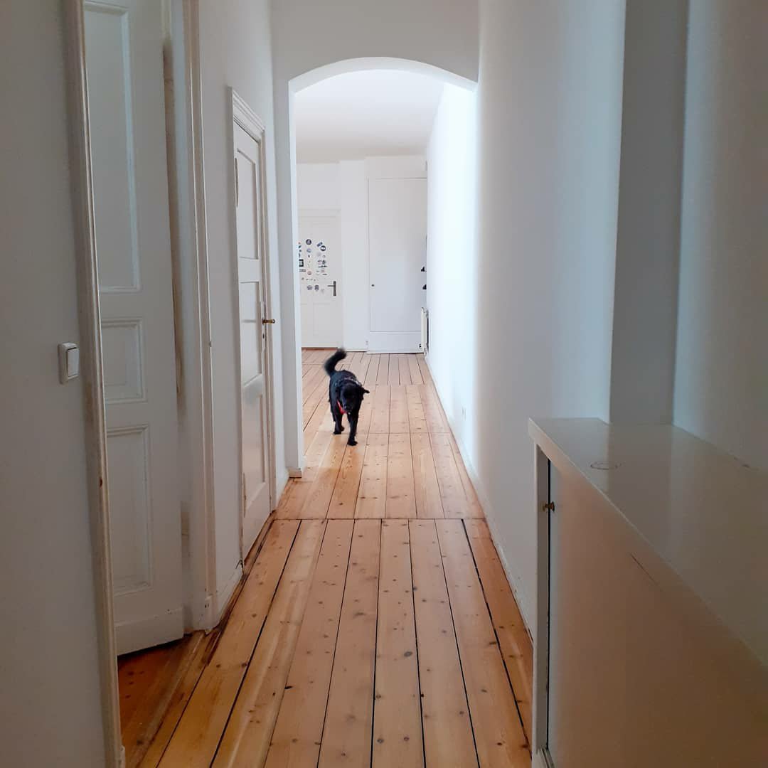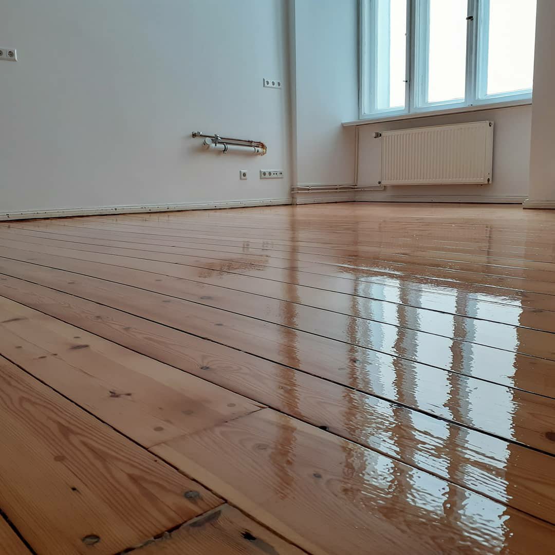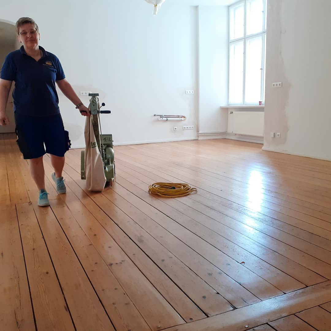 Der Boden die Bodendielen wurden abgeschliffen und begradigt, mit einem Wasserlack versiegelt & die Wände sind gestrichen