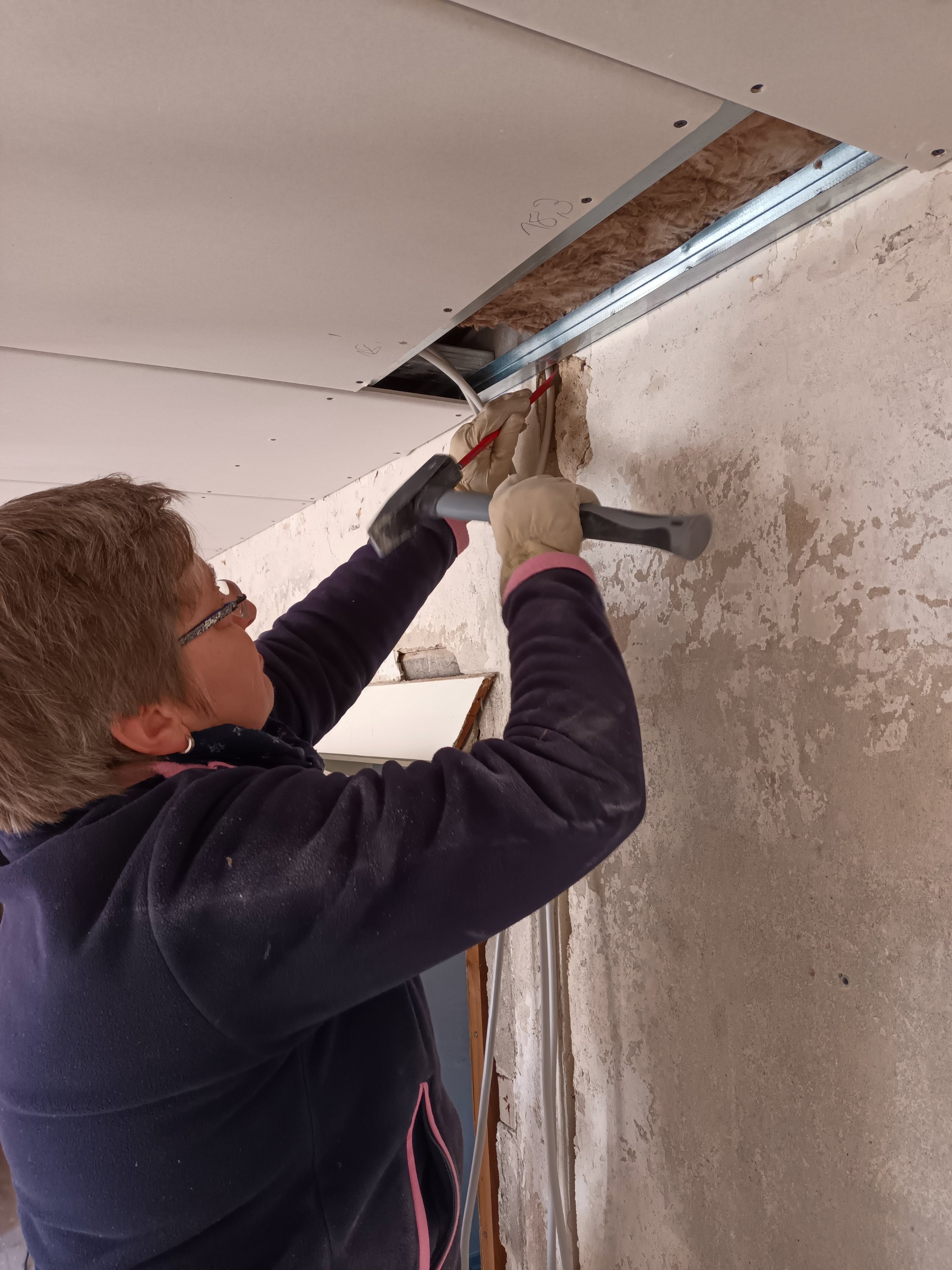 Hier wurde irgendwann ein Bad mit einer Trockenbauwand eingebaut. Dabei wurden einige wichtige Arbeitsgänge ausgelassen was zu großen Schäden führte.